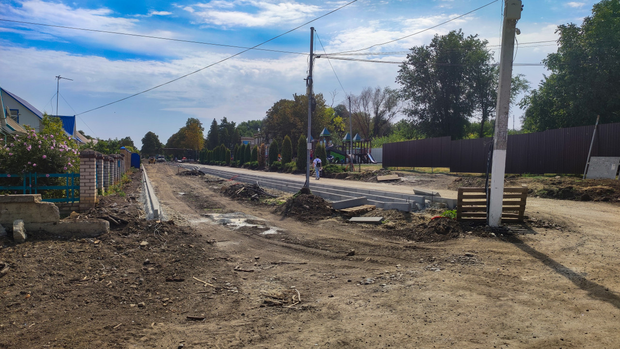 Участок улицы с новым бордюром и подготовкой к ремонту дорожного полотна в частном секторе