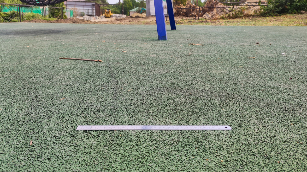 Измерение толщины поврежденного резинового покрытия на спортивной площадке
