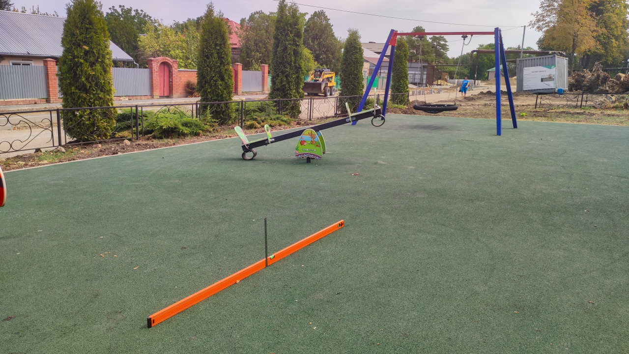 строительство благоустройство контроль качества приёмка работ измерение инструмент строительный уровень металлическая линейка резиновое покрытие резиновая крошка зелёное покрытие покрытие площадки детская площадка безопасностьПохожие фотографии