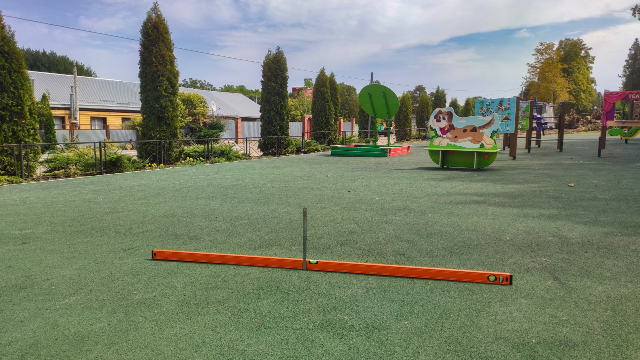 строительство благоустройство контроль качества приёмка работ измерение инструмент строительный уровень металлическая линейка резиновое покрытие резиновая крошка зелёное покрытие покрытие площадки детская площадка безопасностьПохожие фотографии