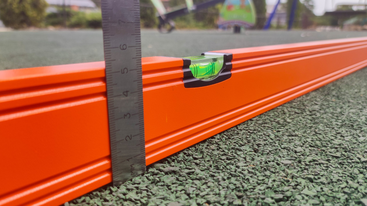 строительство благоустройство контроль качества приёмка работ измерение инструмент строительный уровень металлическая линейка резиновое покрытие резиновая крошка зелёное покрытие покрытие площадки детская площадка безопасностьПохожие фотографии