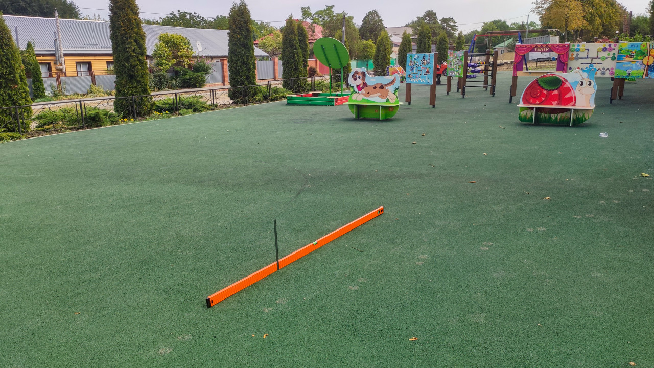строительство благоустройство контроль качества приёмка работ измерение инструмент строительный уровень металлическая линейка резиновое покрытие резиновая крошка зелёное покрытие покрытие площадки детская площадка безопасностьПохожие фотографии