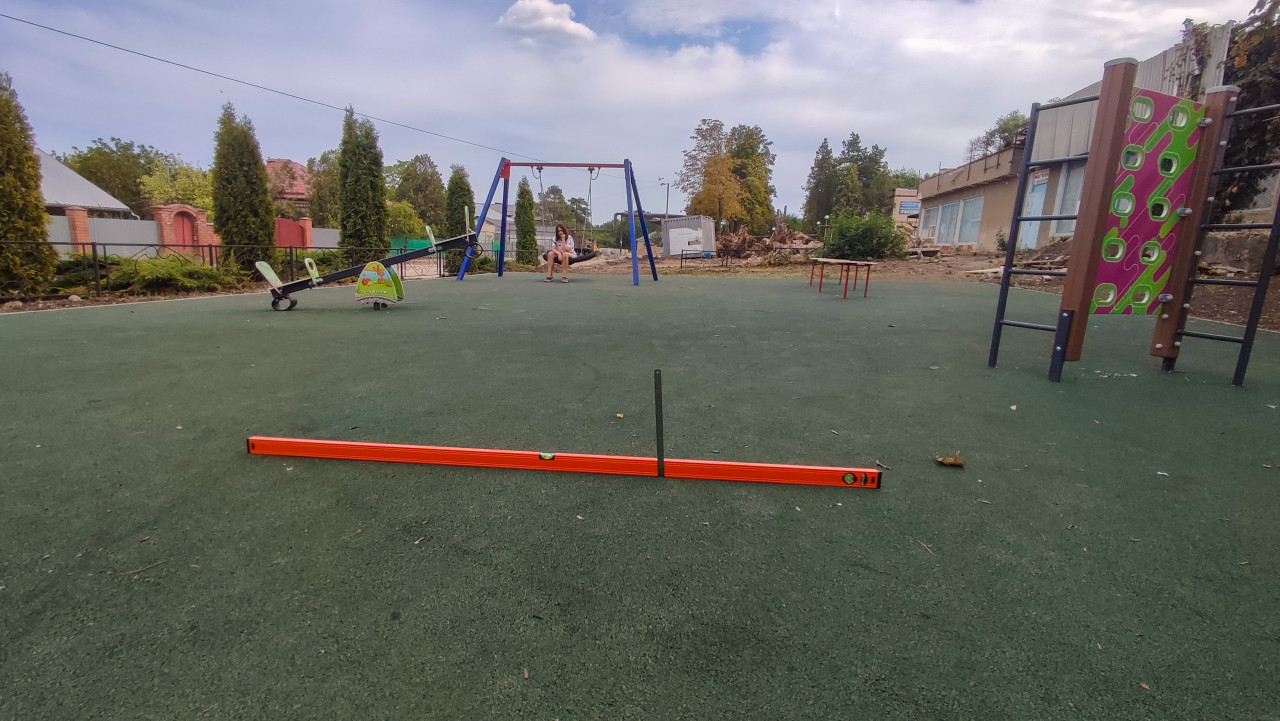 строительство благоустройство контроль качества приёмка работ измерение инструмент строительный уровень металлическая линейка резиновое покрытие резиновая крошка зелёное покрытие покрытие площадки детская площадка безопасностьПохожие фотографии