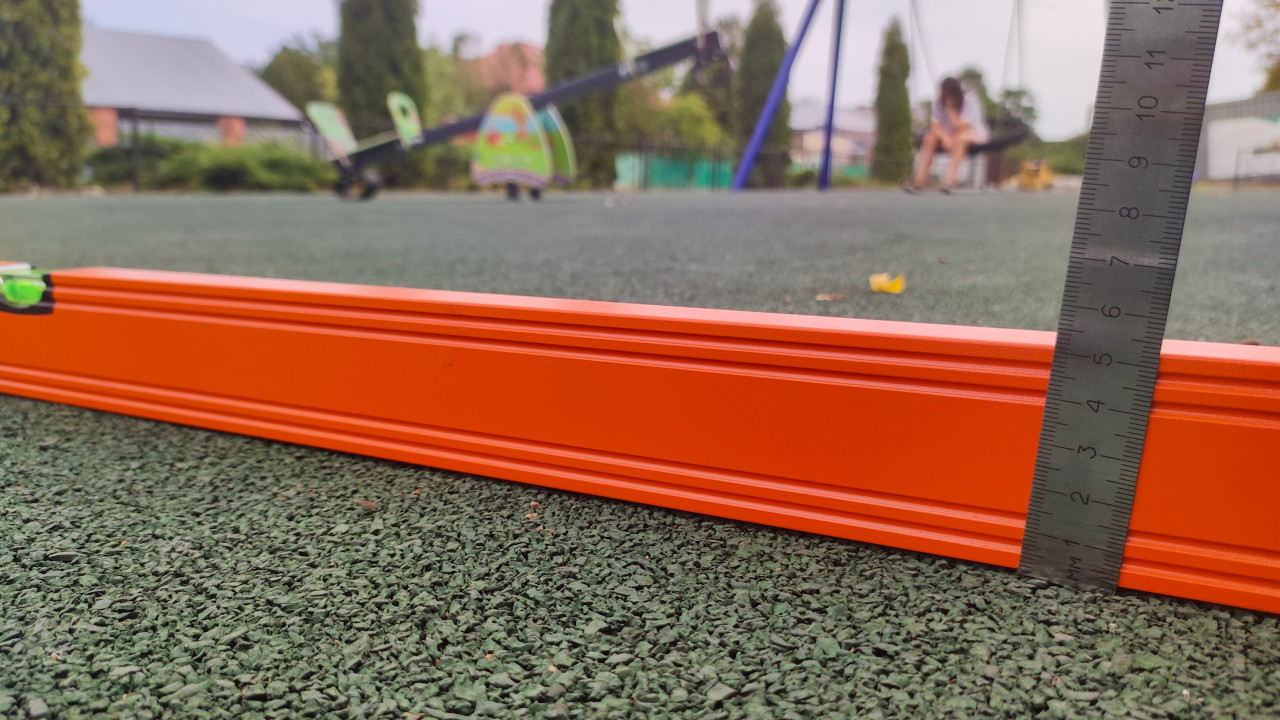 строительство благоустройство контроль качества приёмка работ измерение инструмент строительный уровень металлическая линейка резиновое покрытие резиновая крошка зелёное покрытие покрытие площадки детская площадка безопасностьПохожие фотографии