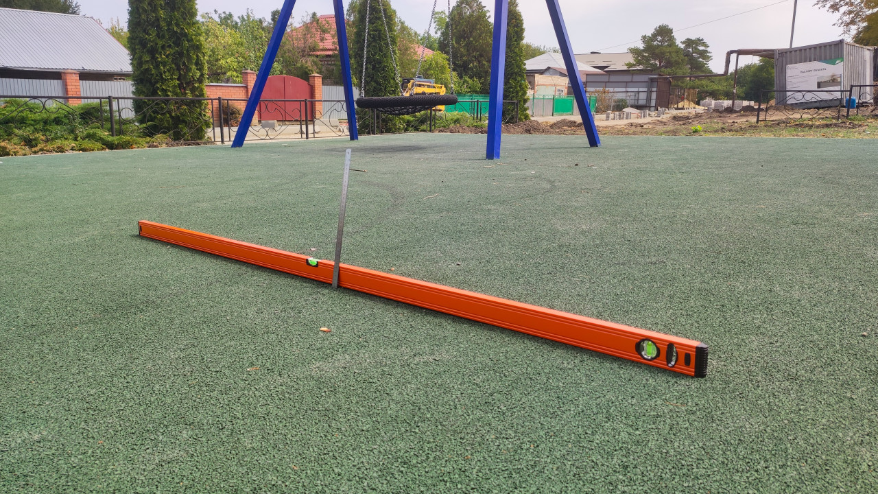 строительство благоустройство контроль качества приёмка работ измерение инструмент строительный уровень металлическая линейка резиновое покрытие резиновая крошка зелёное покрытие покрытие площадки детская площадка безопасностьПохожие фотографии