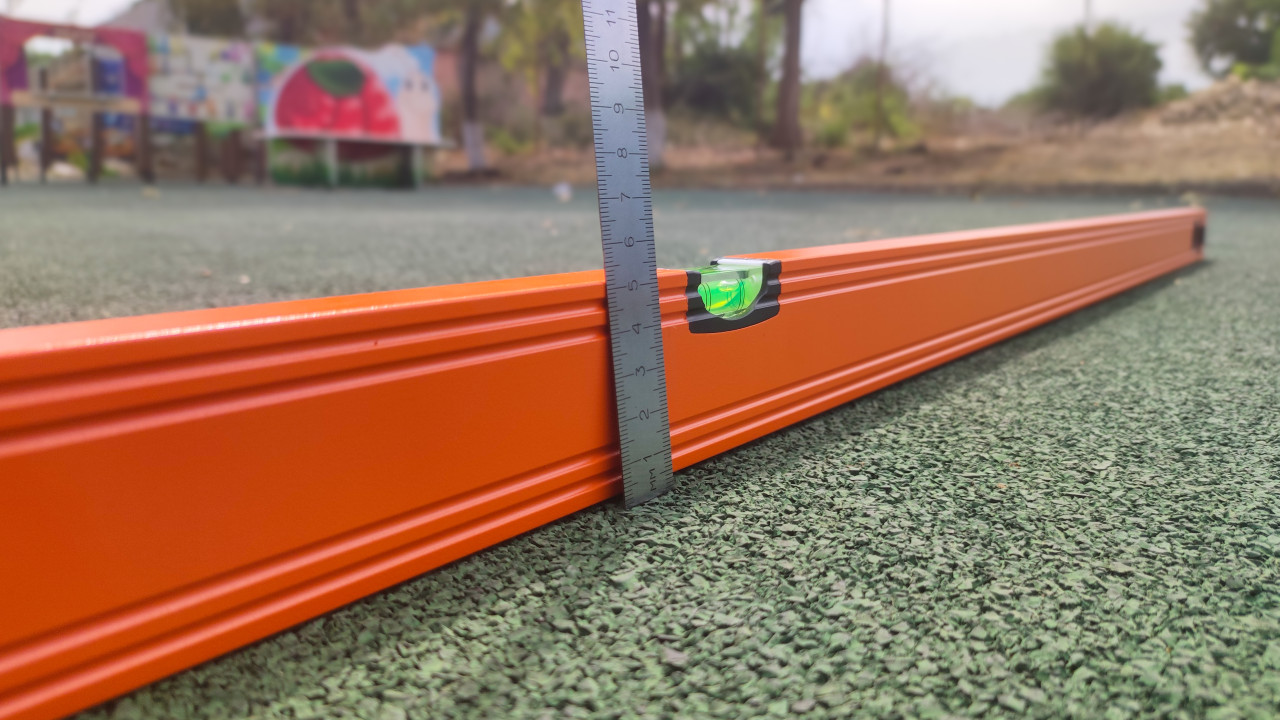 строительство благоустройство контроль качества приёмка работ измерение инструмент строительный уровень металлическая линейка резиновое покрытие резиновая крошка зелёное покрытие покрытие площадки детская площадка безопасностьПохожие фотографии