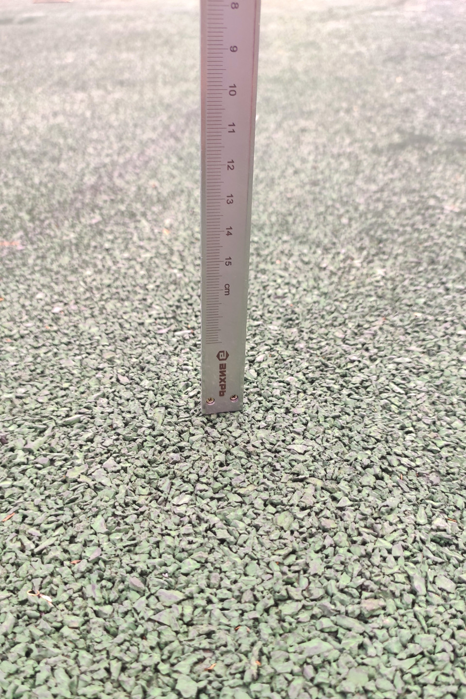 Измерение глубины песчаного основания дорожки линейкой и уровнем