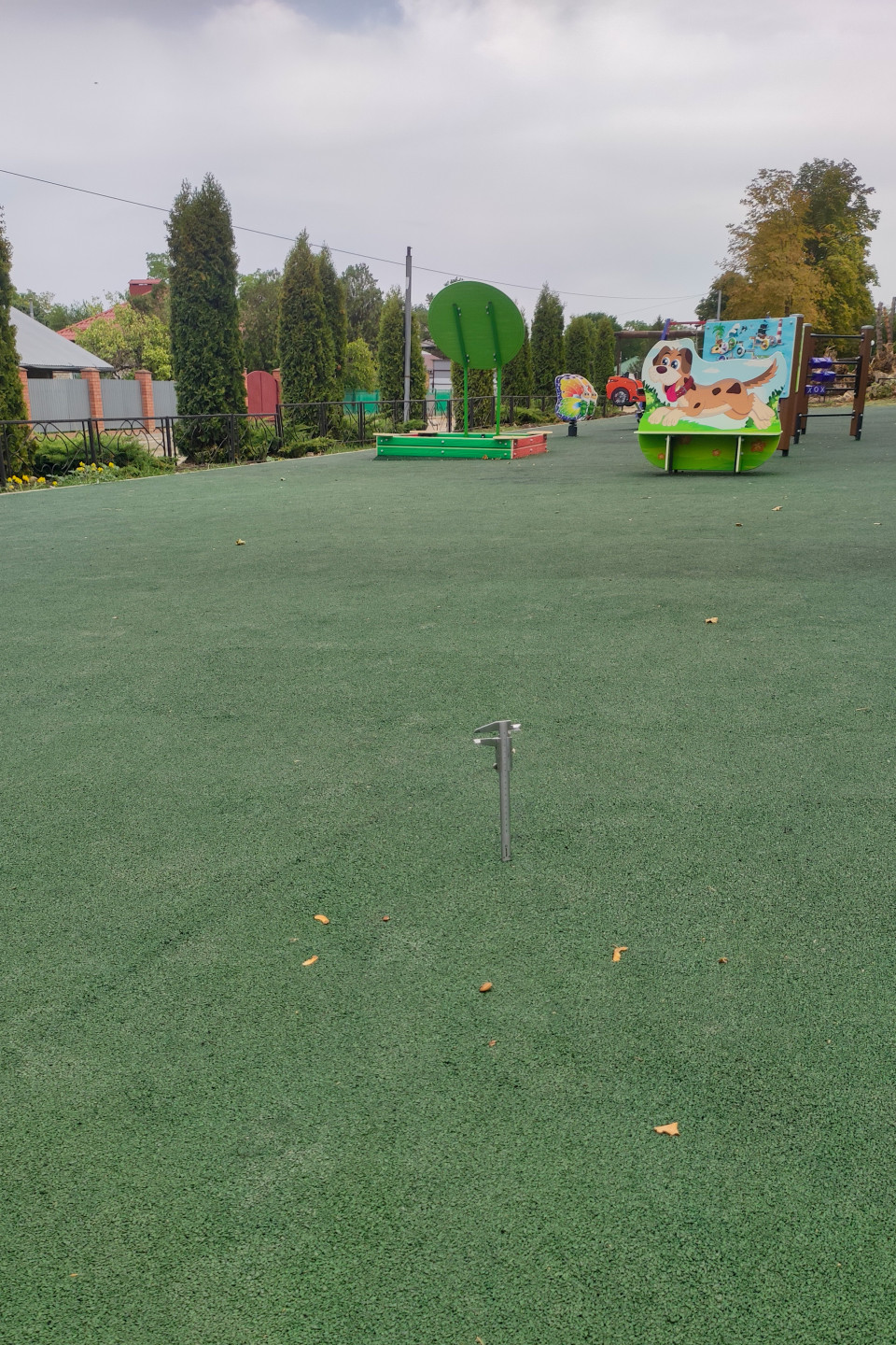 Измерение неровностей бетона на поврежденной площадке для баскетбола