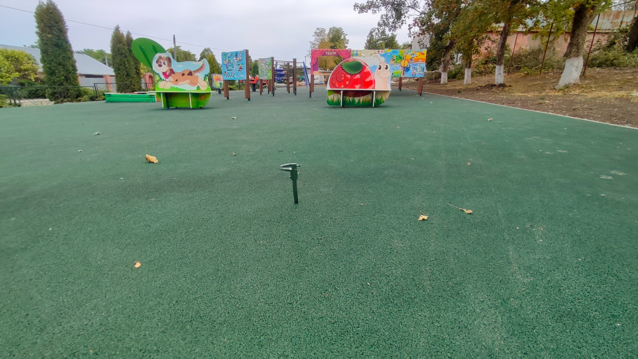 Измерение глубины песчаного основания для пешеходной дорожки