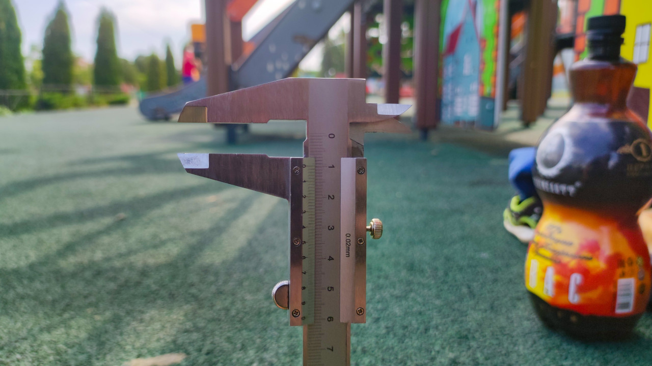 Измерение ровности резинового покрытия уровнем и металлической линейкой