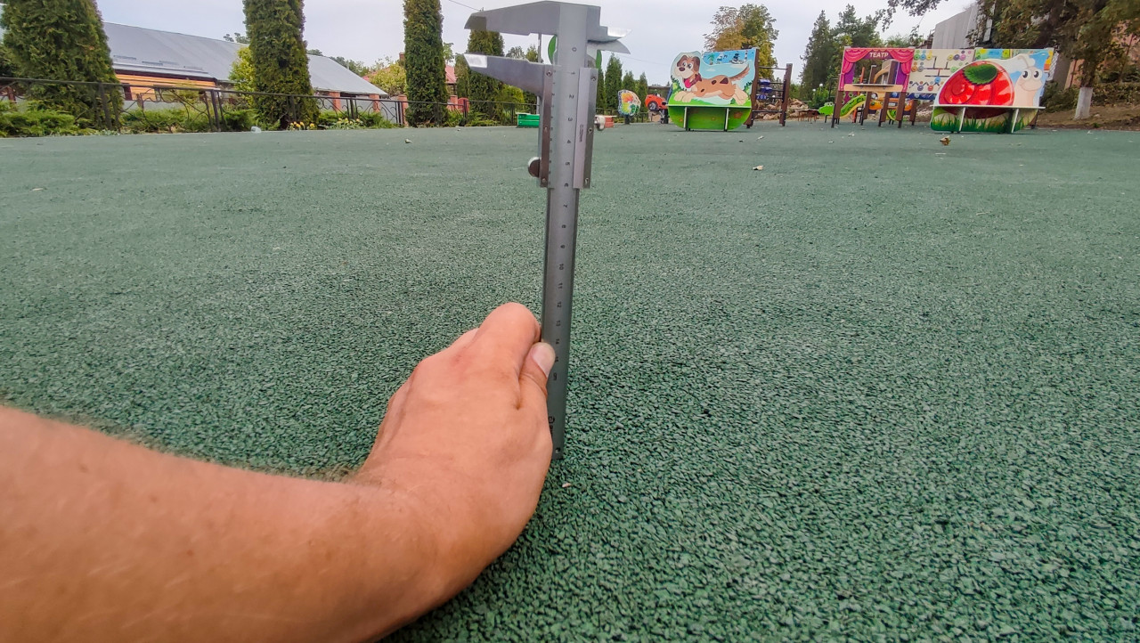 Глубокая вмятина на резиновом покрытии из крошки крупным планом