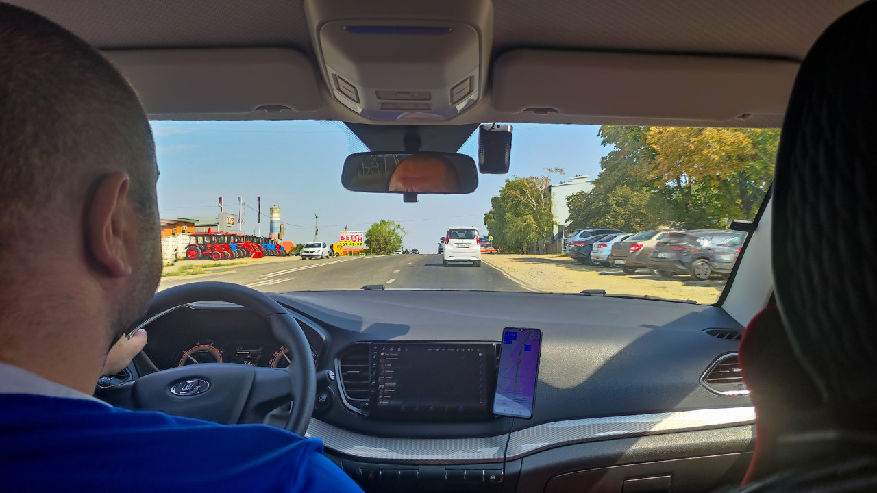 Наклейка с текстом «Не важно какая у тебя машина…» на запылённом стекле автомобиля с надписью AIR BAG