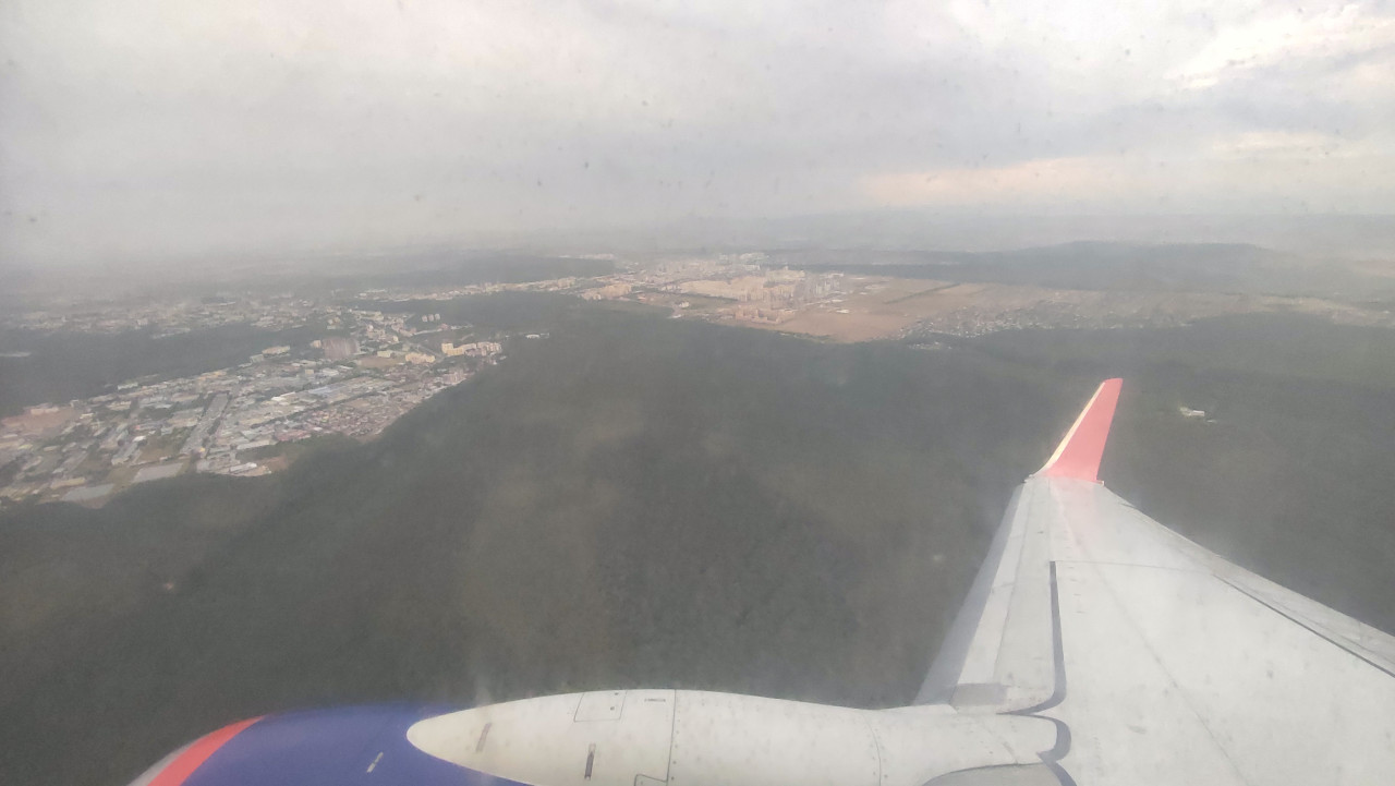 Две дымовые трубы промзоны и указатель съезда над трассой