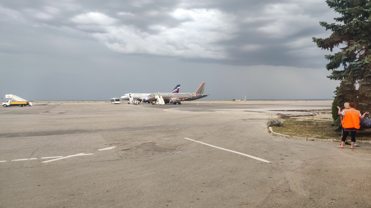 Самолет Nordwind стоит на перроне аэропорта ночью